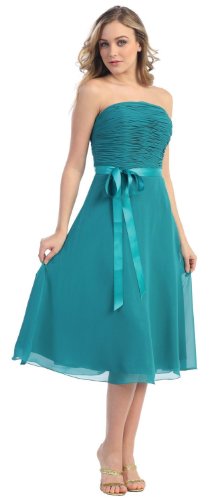Image Name: Strapless Chiffon Junior Prom Dress #726 (8, Teal Green)